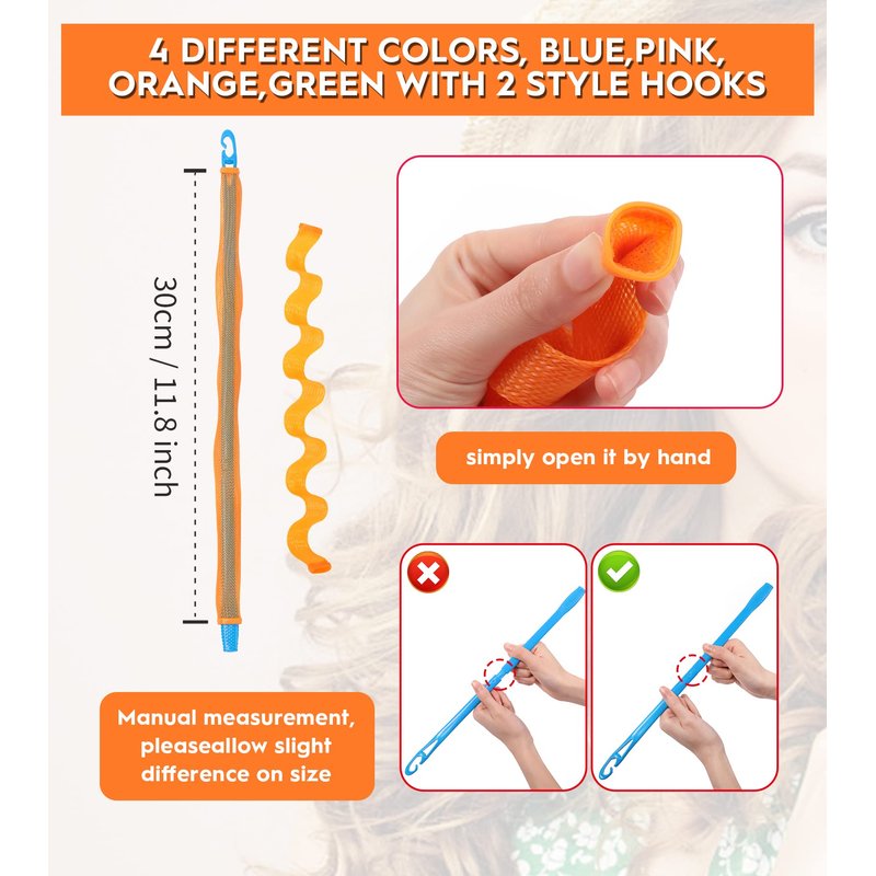 - Sufficient Quantity: You will receive 30 pieces of wave hair curlers in 6 different colors including pink, blue, yellow, green, orange and purple, 5 pieces of each color, also comes with 2 styling hooks. Measuring 30cm/11.81inch, enough quantity to meet your needs for everyday curls.