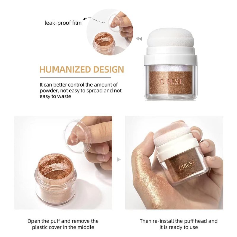 - Latest Design Glitter Powder --- Unique design with Sponge Puff Head, it is very convenient to use directly without makeup brush or sponge. When using it for the first time, remove the leak-proof cap and then pat the sponge head until the powder comes out