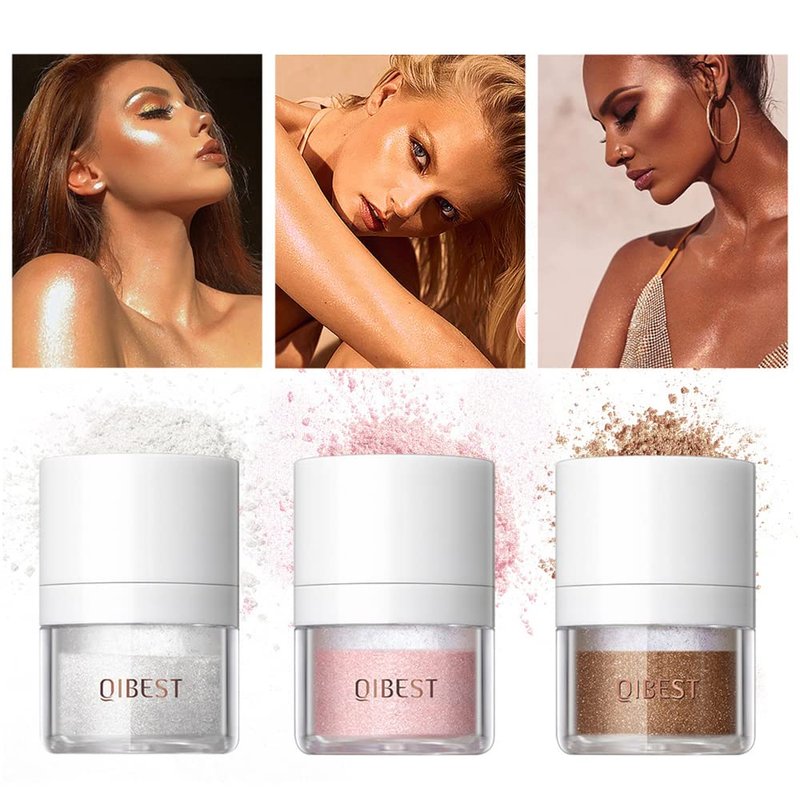 - Glow Your Face or Body --- The highlighter powder has fine, smooth and natural texture, it can have a good blending effect into skin, adds light to the face for a glowing, leave skin looking sun-kissed and feeling luxuriously soft, making you look younger, more energetic, and more aura