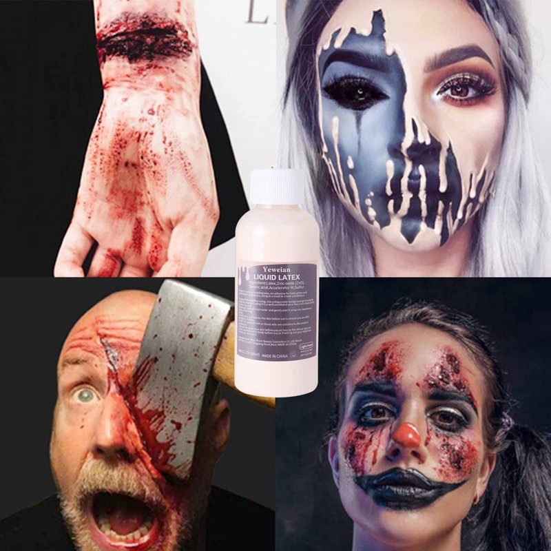 - Liquid Latex Sfx Makeup --- Create unusual skin textures,subtle wrinkle effect(old age makeup),fake skin,scald,burn,scar,wound,prosthetics,claw scratch,bullet holes,fake throat flap,zipper face,skin mask,as a barrier for nail art
