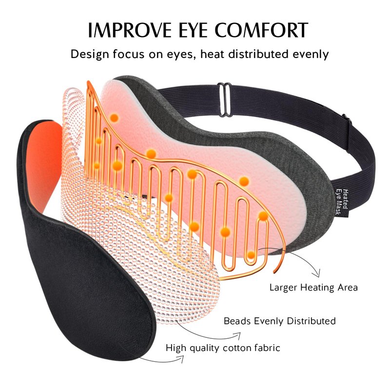 - Heat Distributes Evenly Like a Warm Hug for Eyes: The ergonomic design, weighted beads and larger heat area, fit the contours of the eyes for even warmth, promote better blood circulation to ease tension, soothe tired eyes, and alleviate stress for sound sleep. Crafted from ultra-soft and breathable materials, the migraine eye mask ensures a gentle and comfortable fit