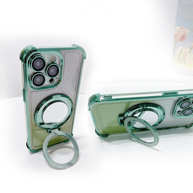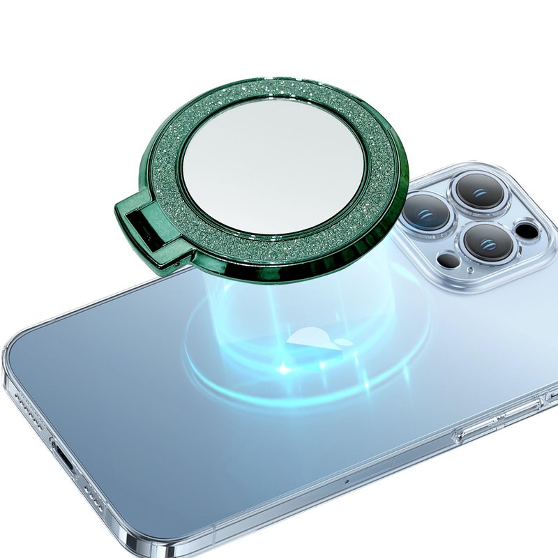YG Culture Diamond Bling Mirror Cell Phone Grip Stand, Supports Magnetic Charging, Adjustable Angles, Always Keep Your Beauty on Point(Green)