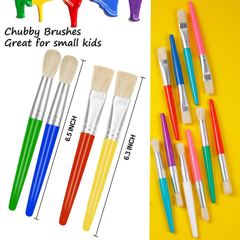 - GREAT QUALITY PAINT BRUSHES WITH STURDY BRISTLES: YGAOHF premium chubby paint brushes for kids, made of soft hog bristle, bright colored plastic handles and rust proof ferrules, sturdy and durable, no shedding. Great for painting.