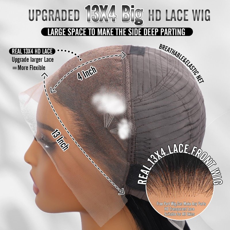 - 【HD Transparent Lace】: 13x4 HD Transparent Bob Lace Front Wigs, Ear to Ear Transparent Lace Melt Into Skin Perfectly, Invisible & Breathable.Lightly Bleached Tiny Knots,Suitable for kinds of Skin,Pre Plucked with Baby Hair,Show Your Natural Hairline.Large Lace Supports Free/ Middle/Side Part Easily.