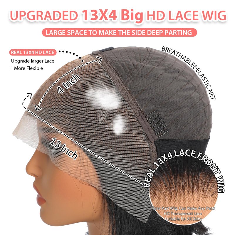 - 【HD Transparent Lace】: 13x4 HD Transparent Bob Lace Front Wigs, Ear to Ear Transparent Lace Melt Into Skin Perfectly, Invisible & Breathable.Lightly Bleached Tiny Knots,Suitable for kinds of Skin,Pre Plucked with Baby Hair,Show Your Natural Hairline.Large Lace Supports Free/ Middle/Side Part Easily