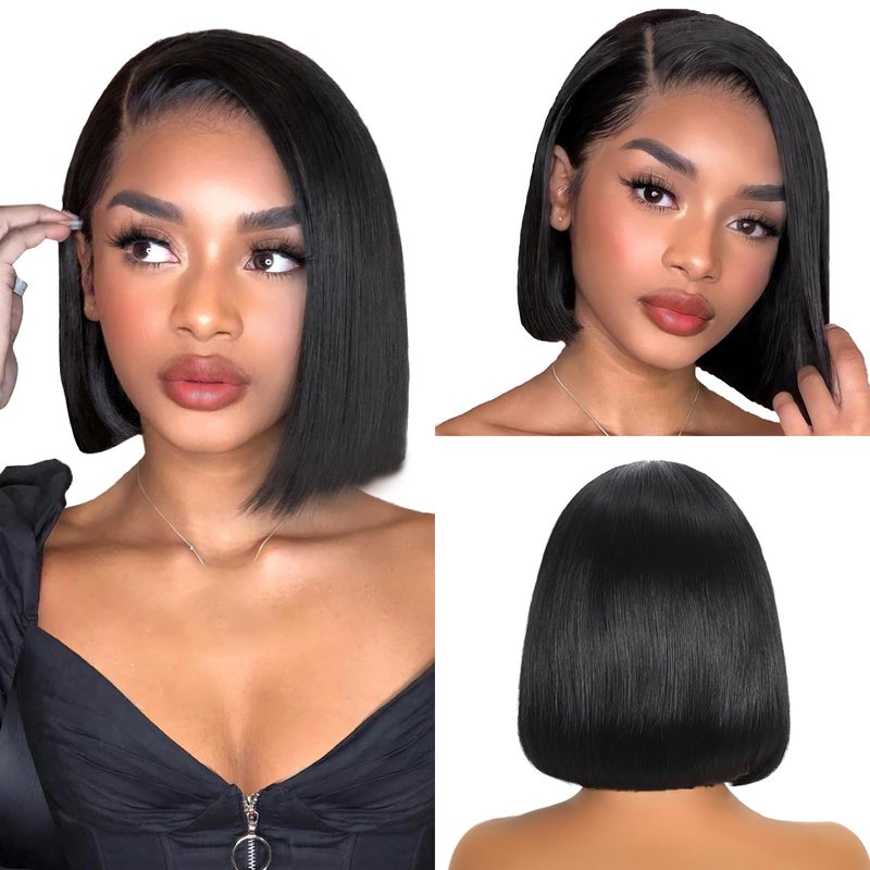 - 【High Density】: 200% Density Bob Wigs Human Hair, Healthy and Bouncy,Full and Thick.No Tracks or Weft Showing See Through.True To Length , Easy to Install, Bob Lace Front Wigs Suitable For Any Occasion