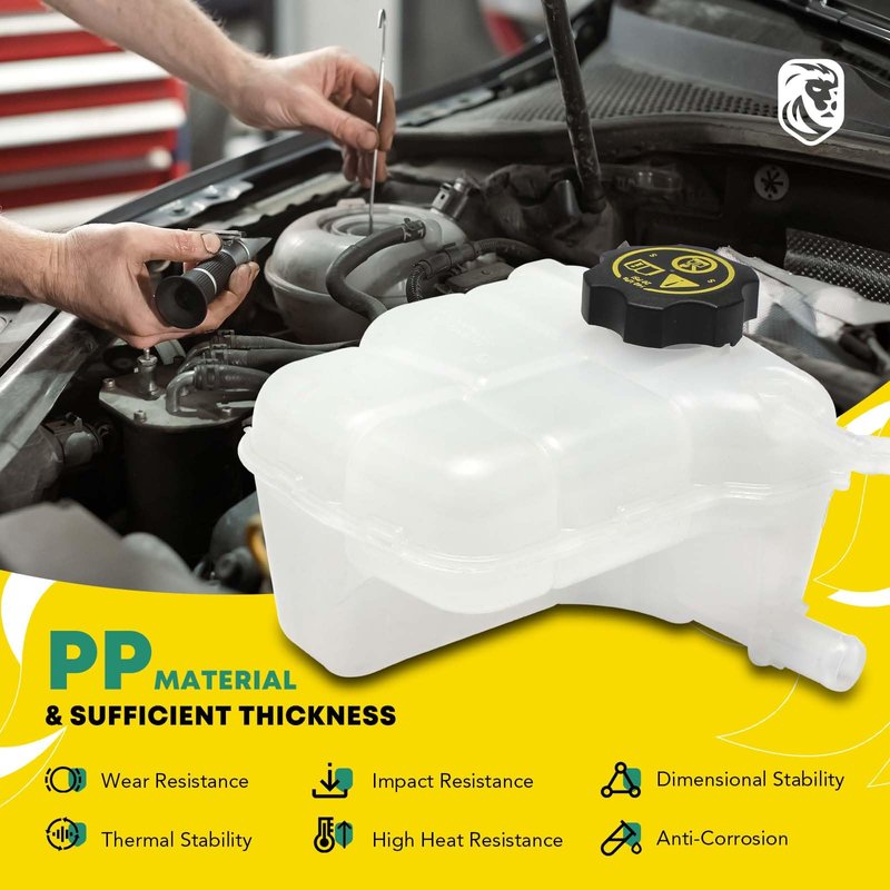 - Engineered to Last a Longtime: Sturdy and Durable material + Rigorous standards=YHT coolant reservoir tank. Crafted from PP materials, which is built to endure the extreme conditions under your hood. There are four standards for this overflow tank: Resistance to Crushing, Resistance to Leakage, Resistance to Impulse, Resistance to Various Temperature Situation