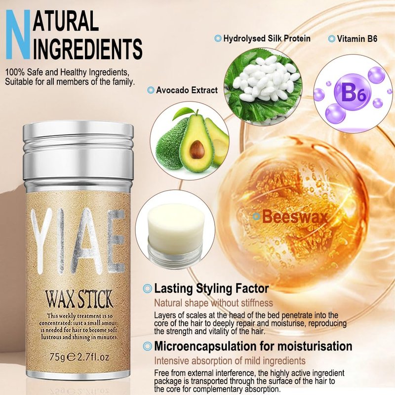- 💖【Mild & Healthy & Natural】 YIAE hair slick stick enriched with Avocado Extract, Hydrolysed Silk Protein, Vitamin B6, Beeswax and other nutrients, it is gentle and safe for all hair types. Natural non-irritating, does not hurt hair, does not hurt the scalp, no residue, alse suitable for child and man. YIAE hair wax womens are soft and delicate in texture, easy to absorb, it's not greasy or oily at all.