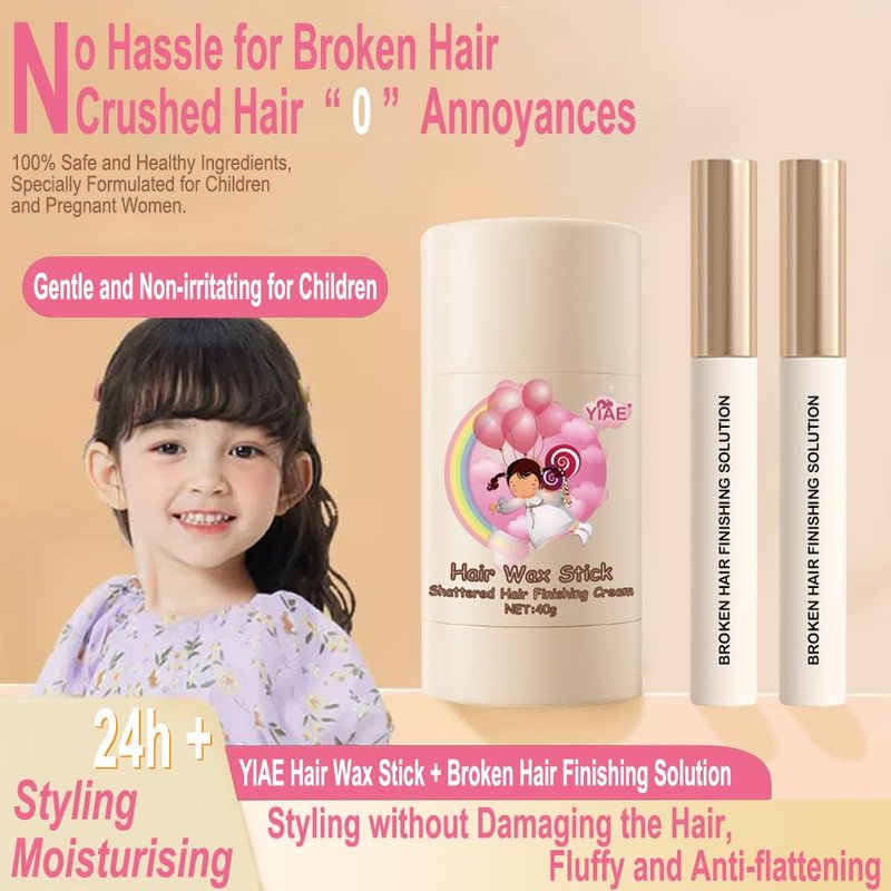 YIAE Hair Wax Stick Kit - Hair Finishing and Braiding Set with Non-Greasy Pomade for Flyaways, Frizz, and Edges, Includes Wax Stick and 2 x 15ml Sticks for Women and Girls