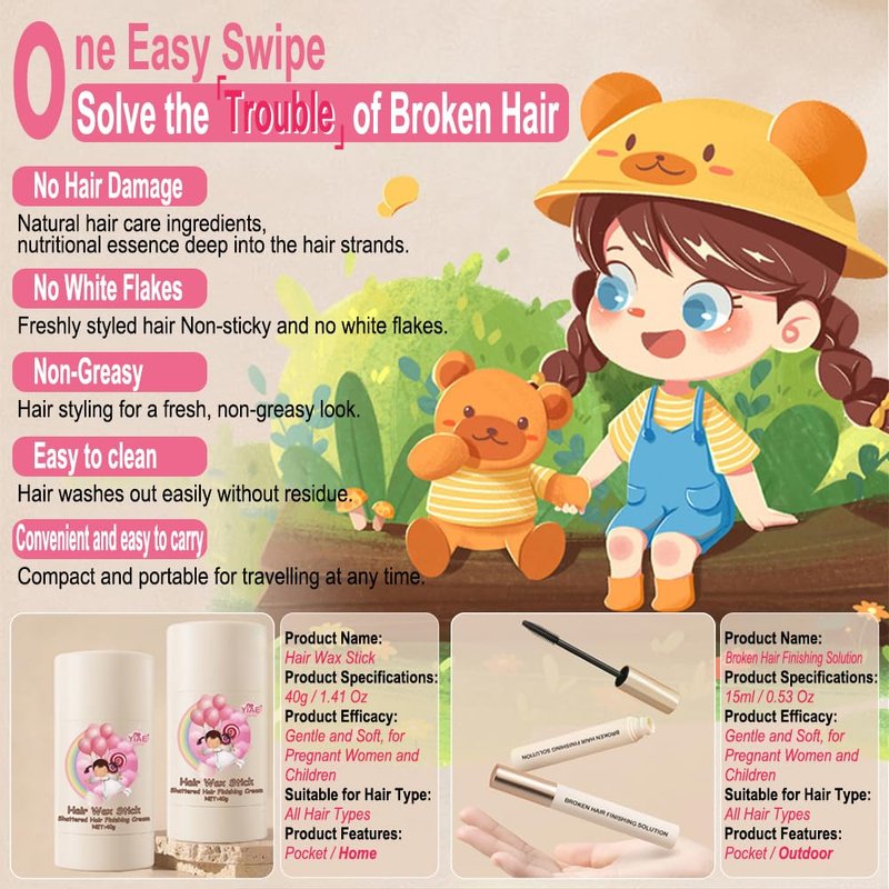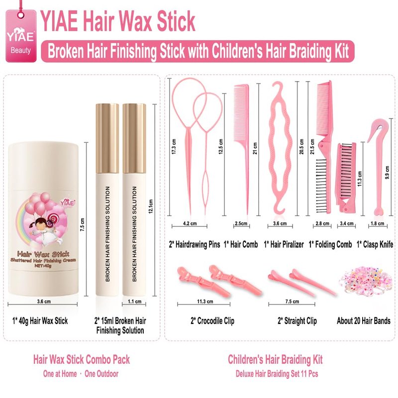 YIAE Hair Wax Stick, 40g Wax Stick for Hair Wigs Edge Control and Broken Hair Finishing Stick with Children's Hair Braiding Kit, Non-greasy Pomade Slick Stick for Flyaways Edge Frizz Hair