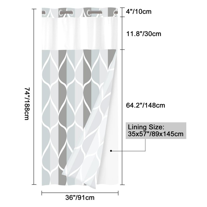 - 【Hotel & SPA】: This hotel-style shower curtain is easy to use due to the detachable liner and built-in grommets, no need to remove the shower rod, easy care and You'll save more since you don't need to buy separate liners and extra shower curtain hooks.