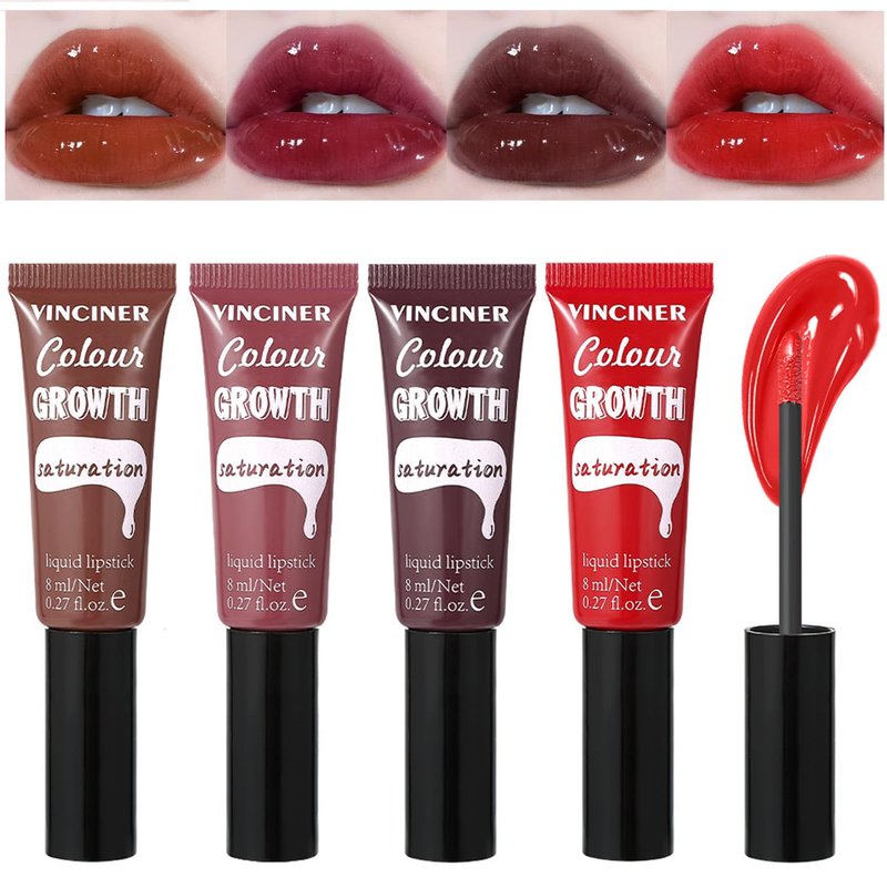 - 【Vivid Color Liquid Lipstick】--- 4 different daily color for choice. You will feel lightweght, and your lip wrinkles will disappear. Bobo water glow transparent glaze. You will get glassy juice lips
