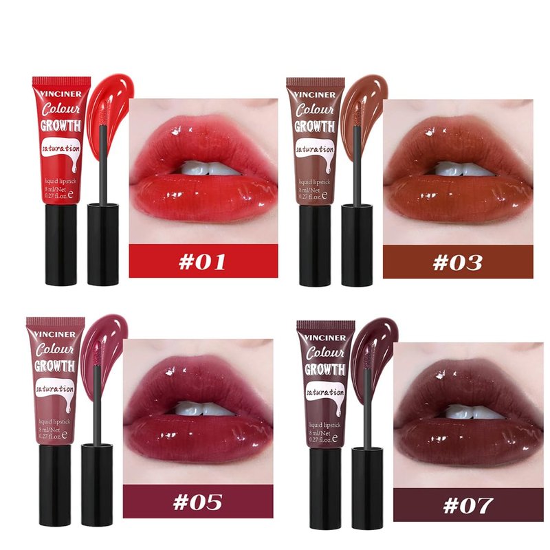 【Vivid Color Liquid Lipstick】--- 4 different daily color for choice. You will feel lightweght, and your lip wrinkles will disappear. Bobo water glow transparent glaze. You will get glassy "juice lips";