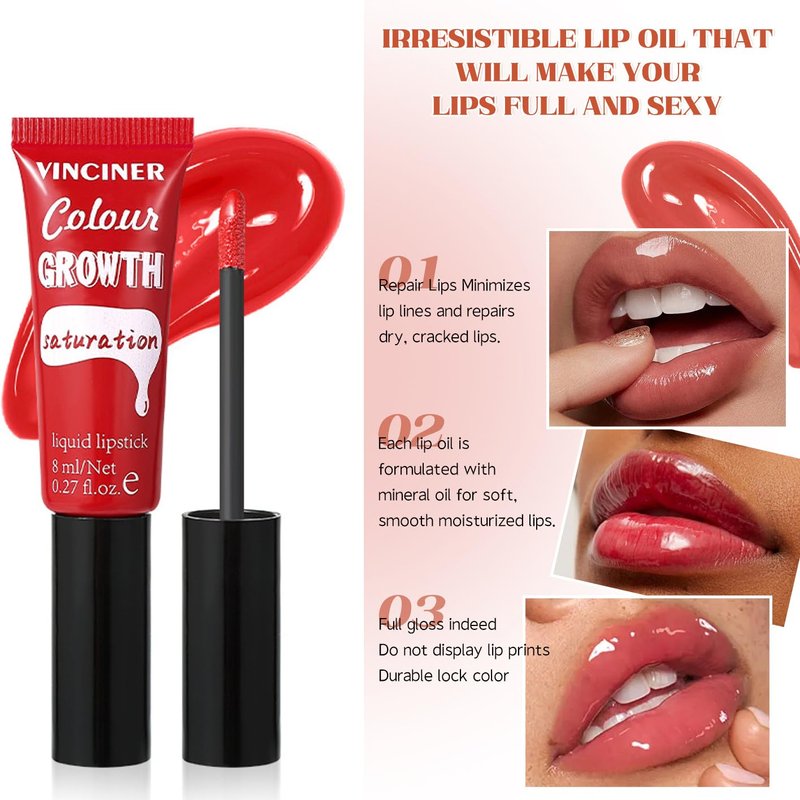 - 【High Pigmented Plumping Lip Gloss】--- High pigmented colors, bright rich color and charming. Immediate fullness, plumping. Irresistible lip oil that will make your lips full and sexy