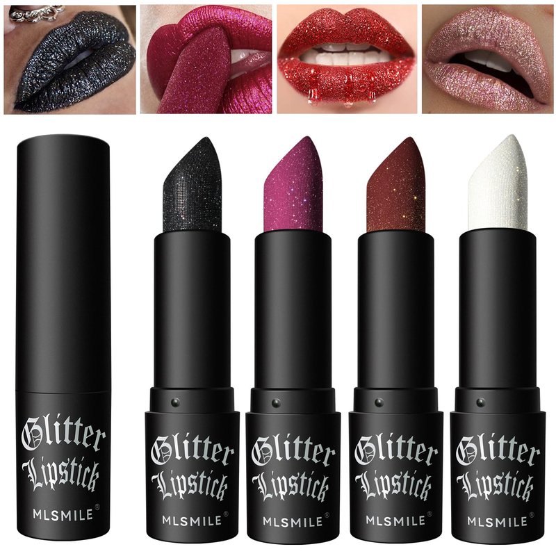 - 【4 Colors Metallic Diamond Lipstick】--- You will get 4 different glitter shine colors, black lipstick, white lipstick, rose red lip balm, and vampire red lipstick. You will get high-pigmented, lightweight, sparkle finish, just a few simple swipes of metallic lipstick
