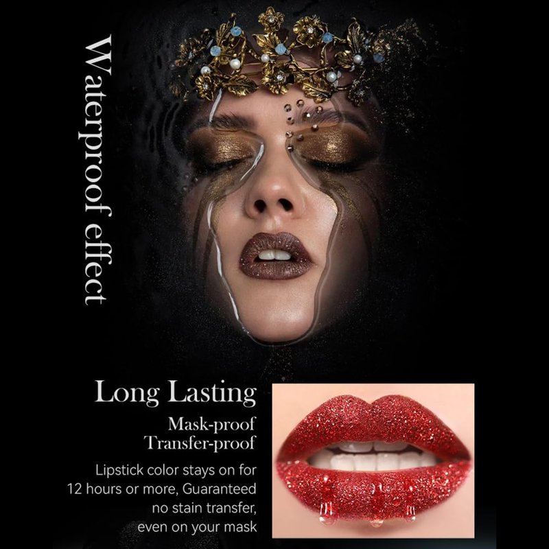 【4 Colors Metallic Diamond Lipstick】--- You will get 4 different glitter shine colors, black lipstick, white lipstick, rose red lip balm, and vampire red lipstick. You will get high-pigmented, lightweight, sparkle finish, just a few simple swipes of metallic lipstick;