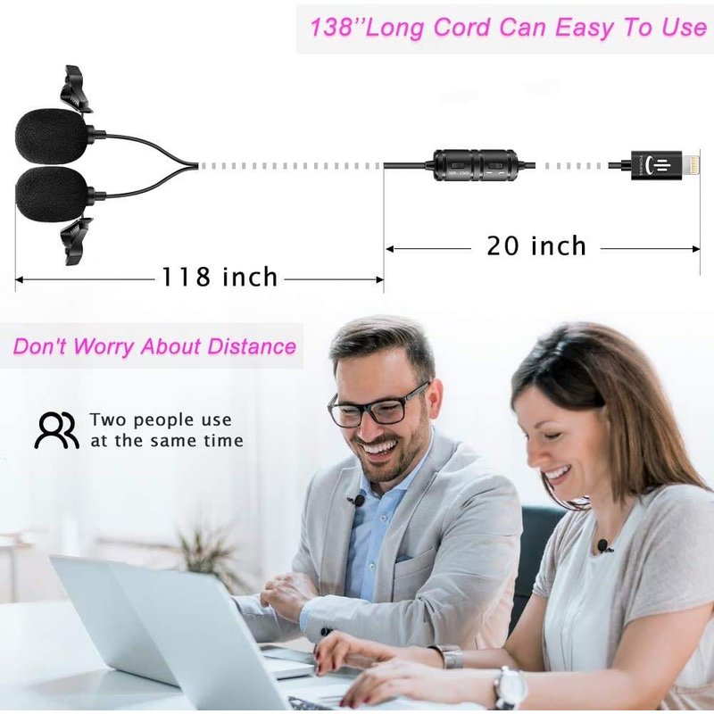 - 【Long Cord 】3.5m Long Cord longer than almost all comparable microphones, It will give you more space for your activities. making it the easiest and most effective way to interview any 2-person simultaneously