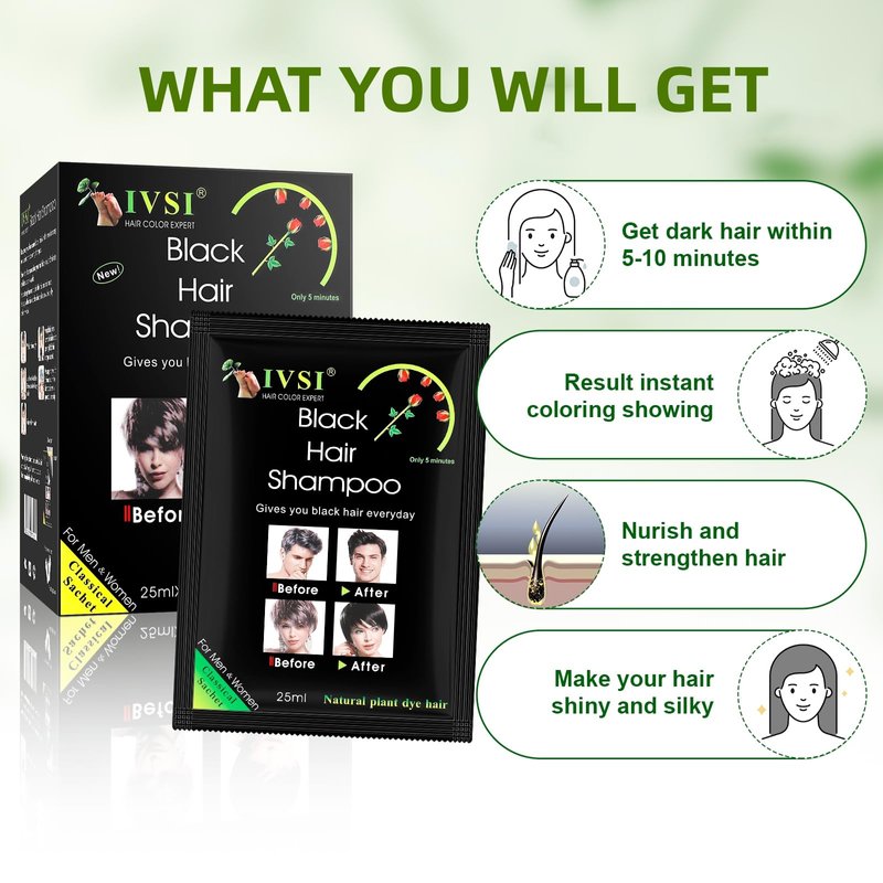 - Suitable for All Types of Hair: Our hair dye shampoo covers all hair types. Just put on plastic gloves, apply the instant hair dye shampoo on your hair, massage for 5-10 minutes, after 20 minutes rinse well with clean water.(Note: Keep your hair dry, just use the shampoo)
