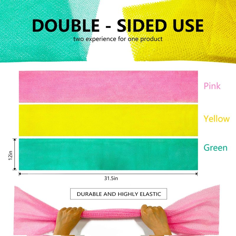Yiclick Exfoliating Body Scrubber, Back Scrubber for Shower Bath, Exfoliating Washcloth Towel for Men Women, Body Exfoliator Loofah Luffa Sponge Net Rag Back Washer (Green+Pink+Yellow)