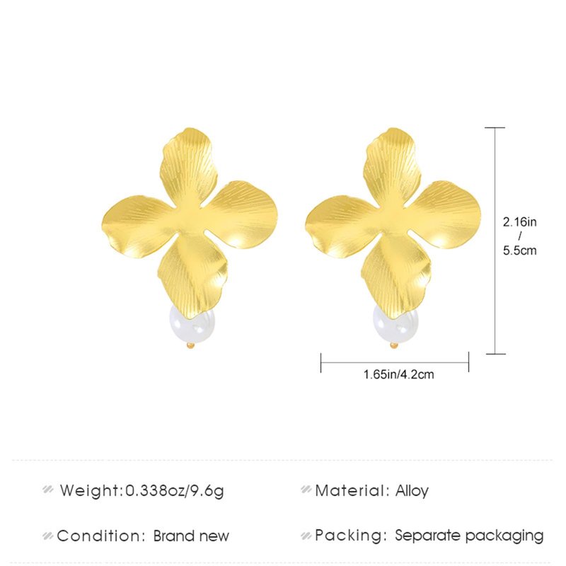 - 【Exquisite and Simple】The personality large flower earring perfectly highlights the beauty of this earring jewelry through the petal stud earrings and pearl drop earrings.