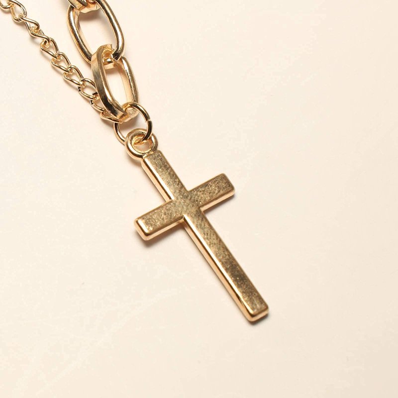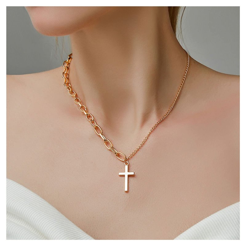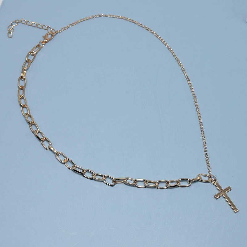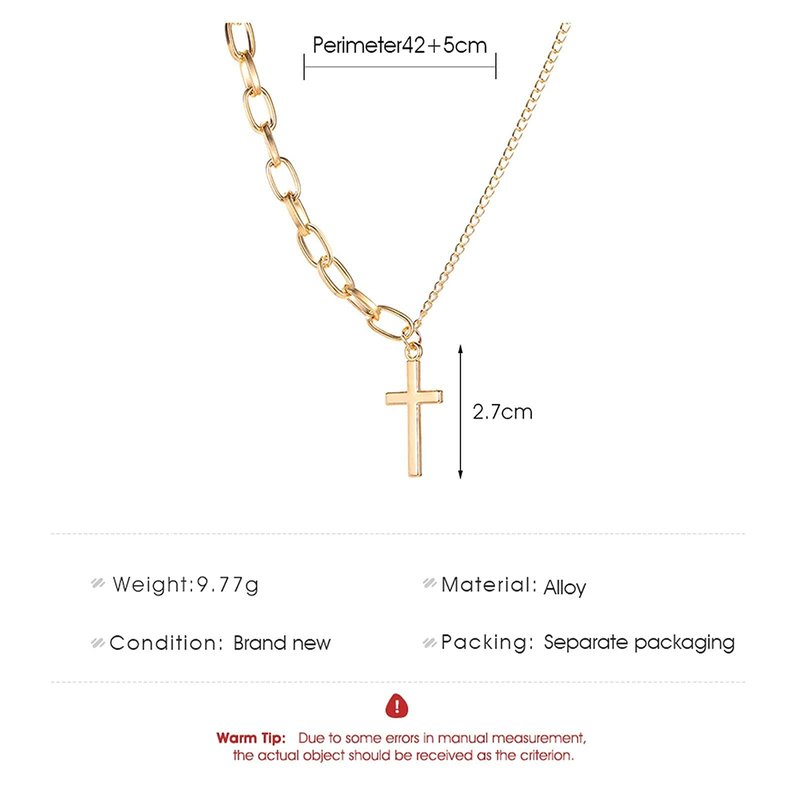 YienDoo Simple Cross Necklace Asymmetric Chain Cross Pendant Necklace Paperclip Chain Fashion Jewelry for Women and Girls (Gold)