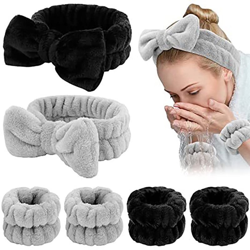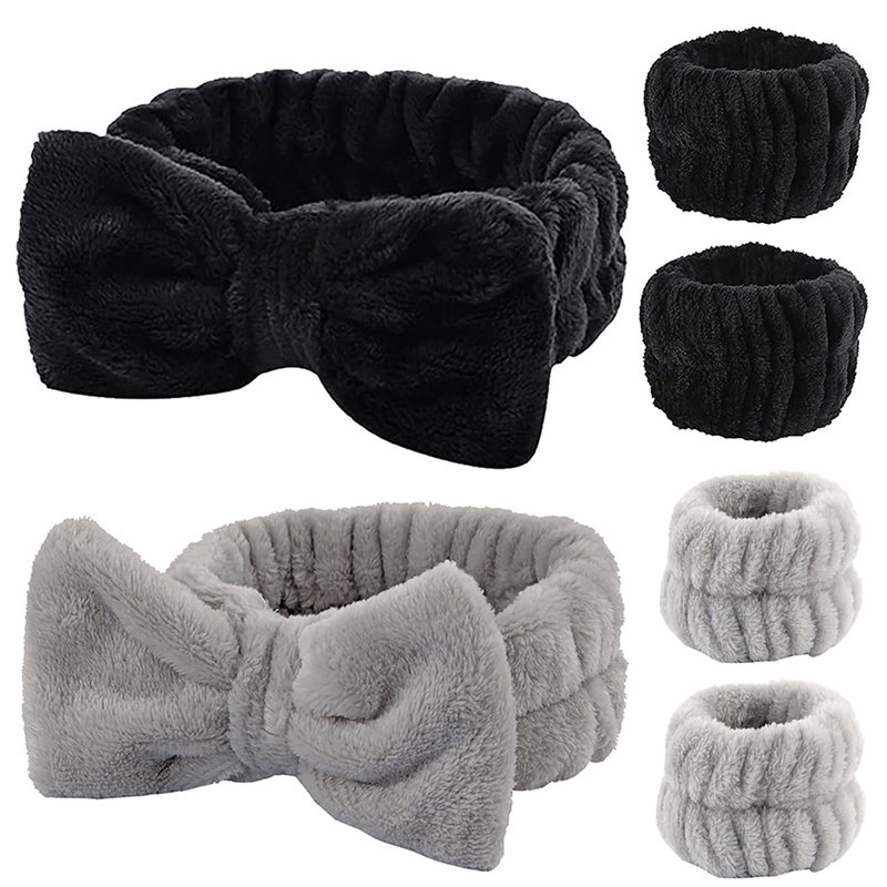 YIFVNGHUI Wrist Towels for Washing Face Spa Wristbands and Headband Microfiber Quick Dry Absorbent Wristbands for Girls Men Makeup 6PCS Face Wash Headband Set(Black&Grey)