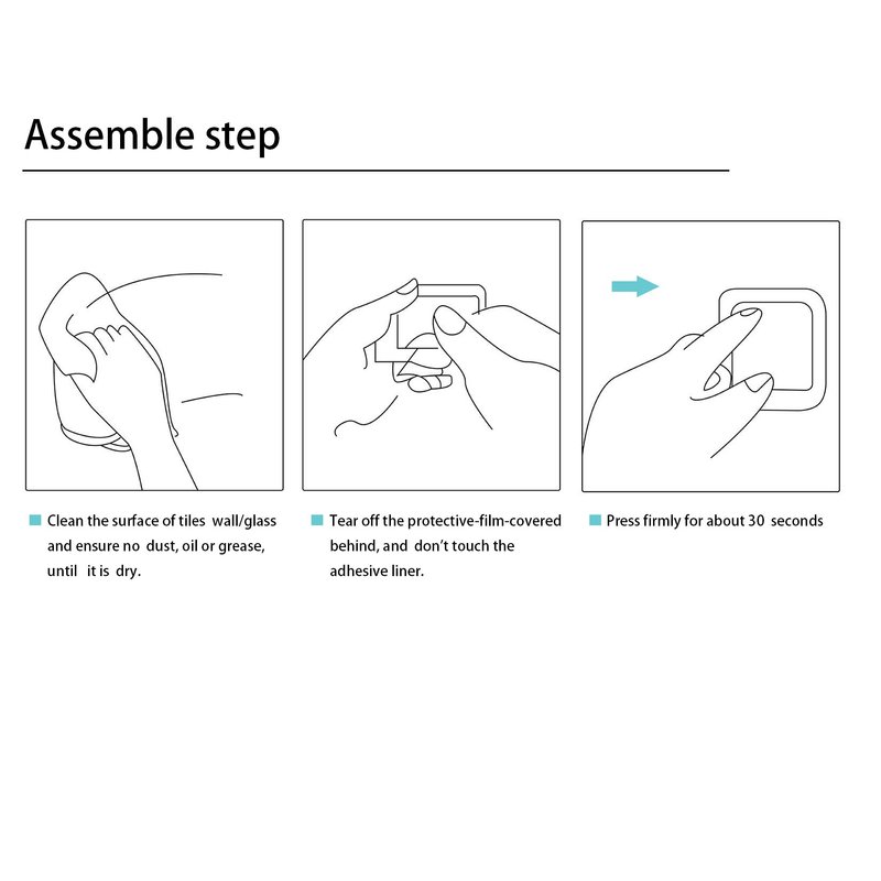 - Two ways to assemble: Adhesive backing, peel off the film of the adhesive pad, stick it on a smooth wall and press for a few seconds. It can also be installed by drilling holes, which is stronger with the double action of adhesive backing and screws, and can meet most people's needs.