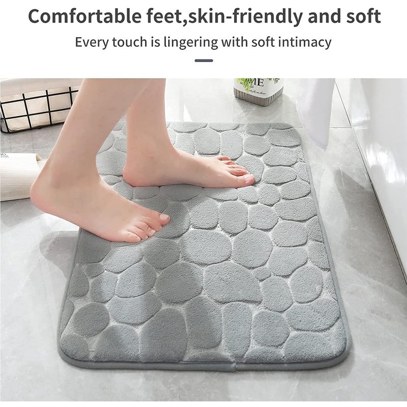 YIHOUSE Memory Foam Bath Mat Cobblestone Bathroom Rugs Super Water Absorbent Bath Mats for Bathroom Machine Washable Bath Rugs(20x32,Light Gray)