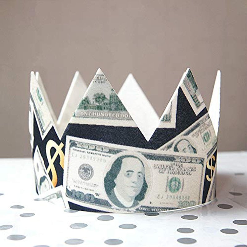 YiiiGoood Dollar Dollar Bill Felt Crown Money Cash Crown 100 Dollar Gag Gift for Birthday Party Money Dollar Theme Party Casino Theme Party Decorations