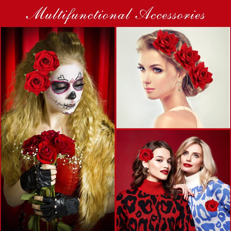 - Handmade and Beautiful: the red roses of the hair clips are made of bright colored polyester, which can serve as hair accessories as well as brooches, same accessory, different functions; Each flower is handmade, so each one is beautiful in a different way