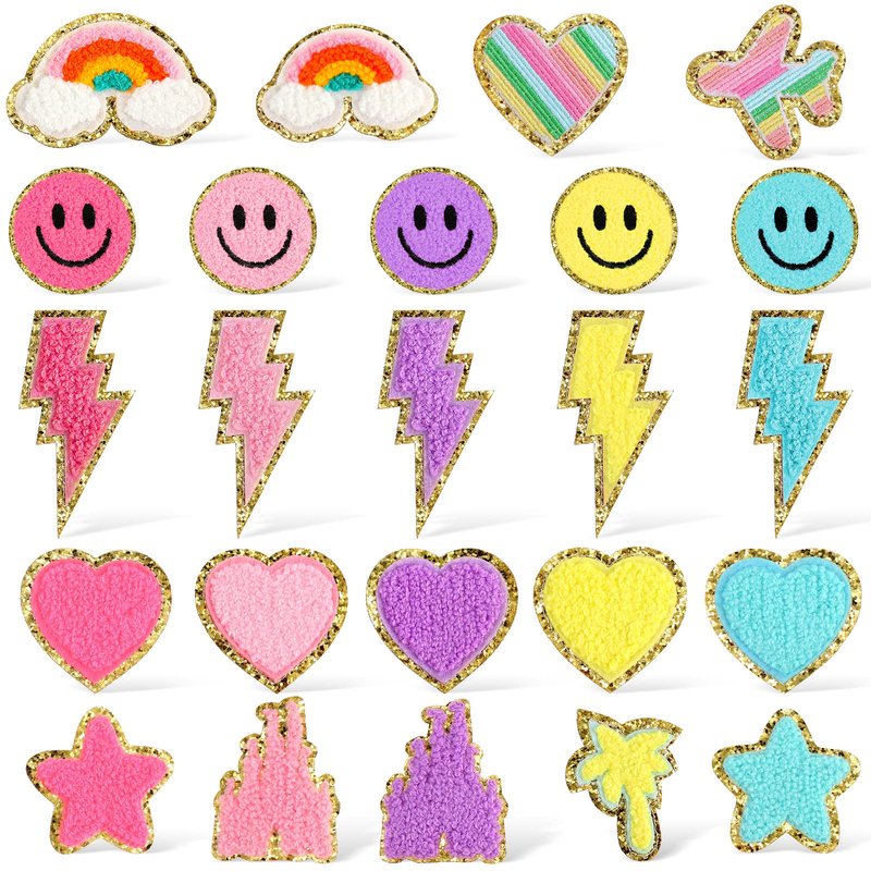 Yilloog 24 Pcs Chenille Patches Cute Iron on Patches Rainbow Heart Smile Face Castle Anchor Star Patches Applique Sew on Patches for Jackets Clothing Fabric(Fresh Style)