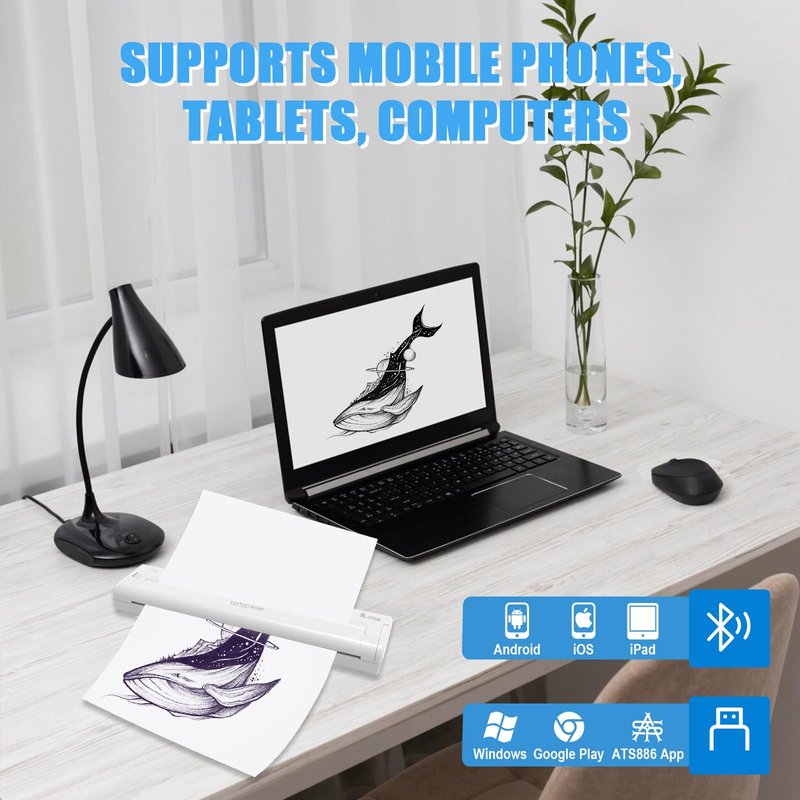 - 【Versatile&High-quality Prints】- This tattoo printing machine supports IOS, Android, Google Play, Bluetooth connection APP and PC connection,bluetooth thermal transfe machine even perfectly adapts to the iPad display size, making it easier to create and work.