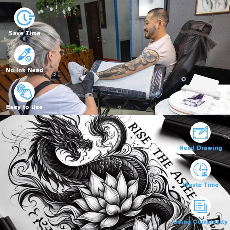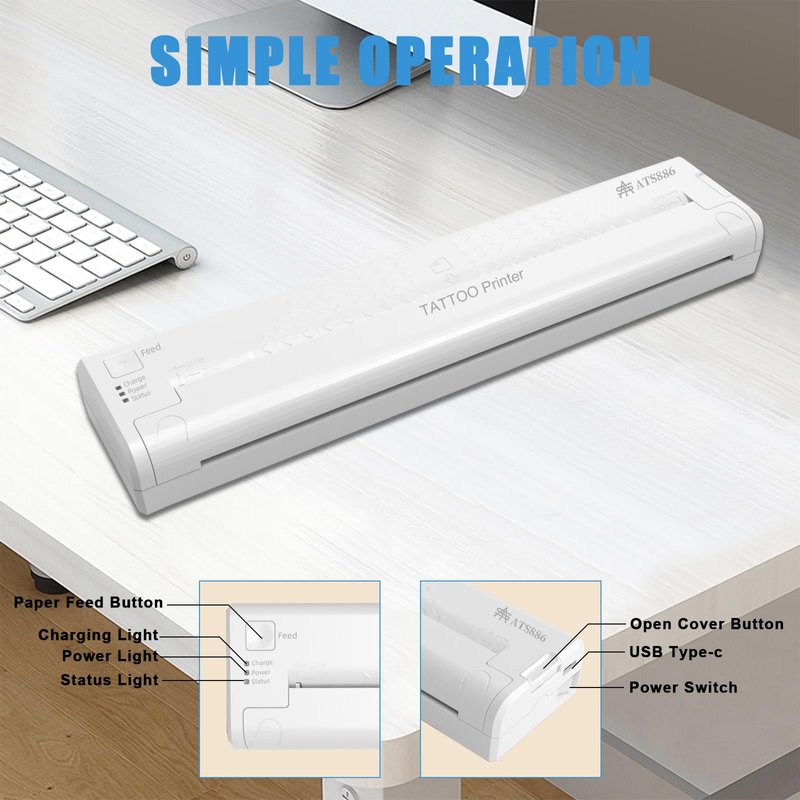 - 【ATS886 Tattoo Stencil Printer】- ATS886 Printer uses advanced thermal technology to print clear and precise patterns and lines,ensure that your transfers are of the highest quality possible,Tattoo Stencil Printer is safe and durable, fast transfer printing, low noise, not easy to heat and stable performance.