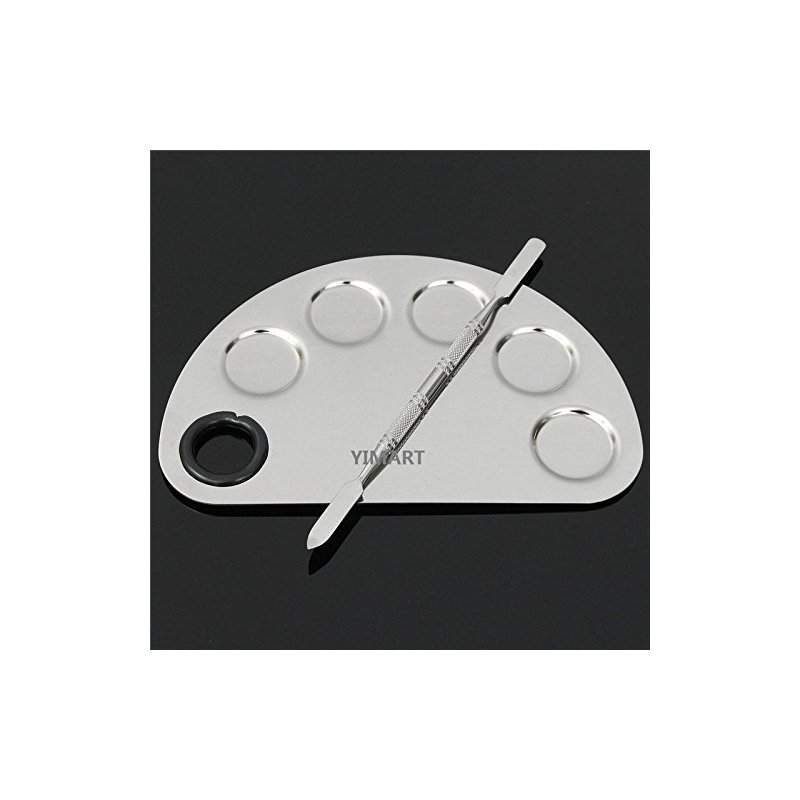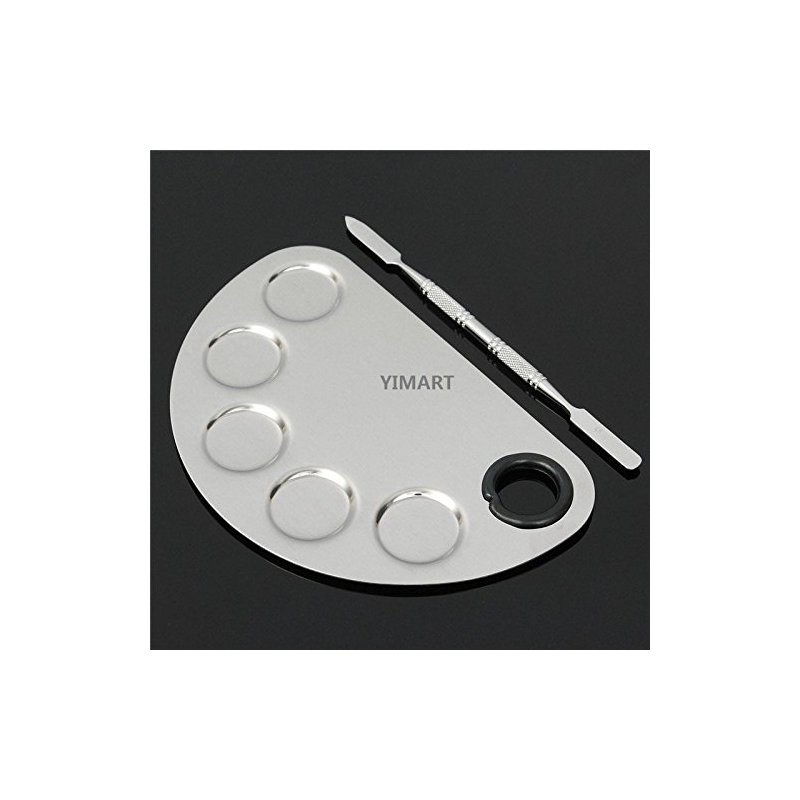 Yimart® Stainless Steel Makeup Palette Cosmetic Five Holes Mixing Pallete Spatula