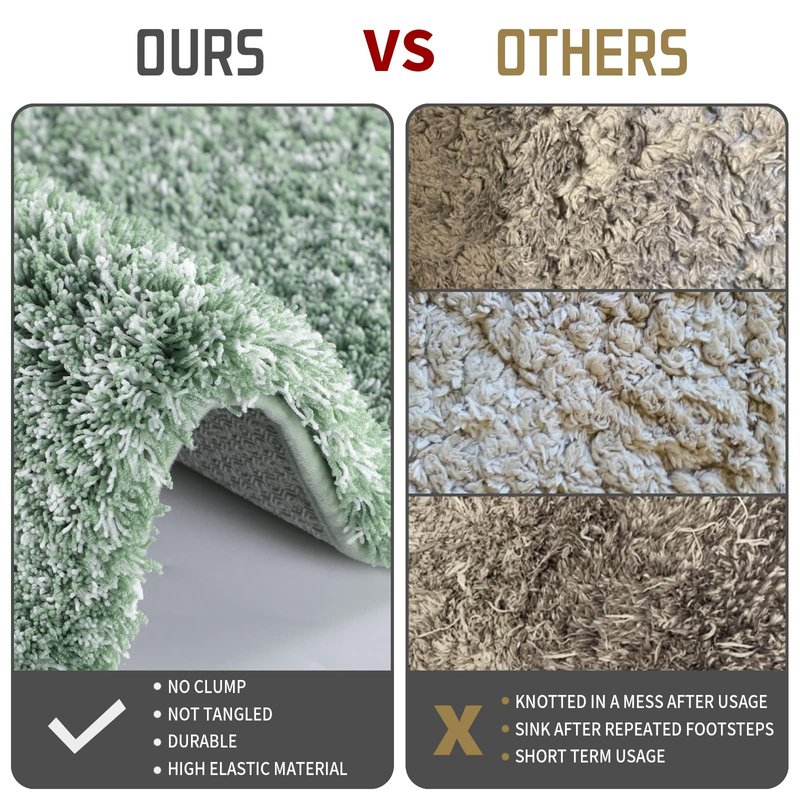 - [ MULTIPLE MACHINE WASHES WITHOUT CLUMPING OR TANGLING ] Our fluffy bathroom rug can maintains its pristine shape and texture even after numerous machine washes. Unlike other bath mats on the market prone to clumping and tangling, our plush bath rug is crafted from durable, reliable materials that ensure long-lasting use. Cleaning is a breeze—whether hand-washing or using a machine, this bath mat emerges looking brand new, maintaining its quality through time