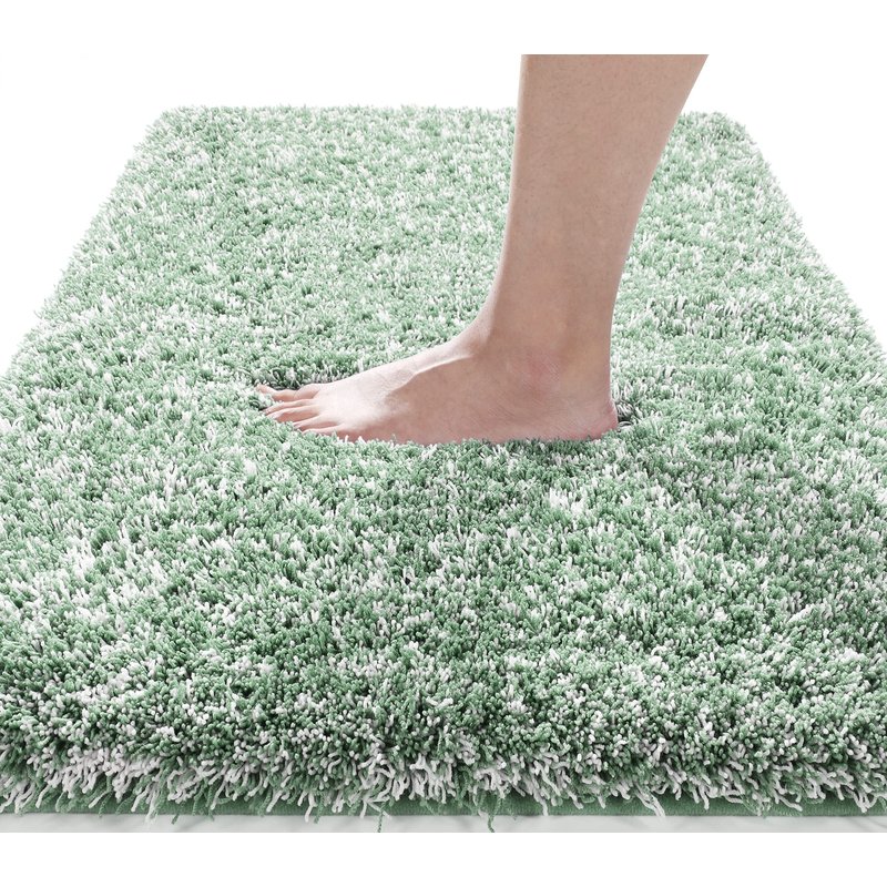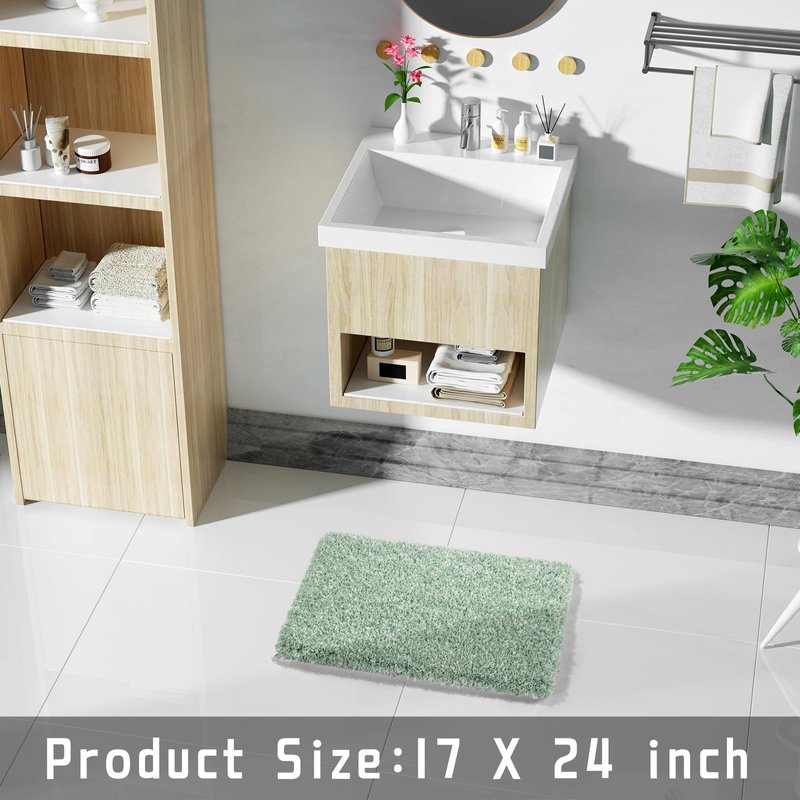 Yimobra Fluffy Plush Bath Rugs, Bath Mats for Bathroom Non Slip, Water Absorbent Microfiber Bath Mat, Dry Quickly, Machine Washable, Thick Bathroom Floor Rugs for Shower, 17"x 24", Light Green & White