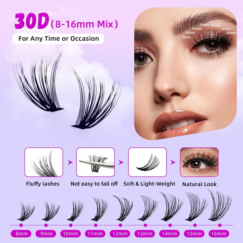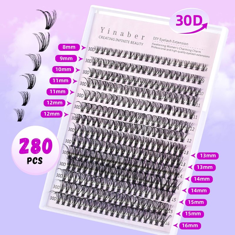 - 【Diverse and personalized choices】: Enjoy a soft and comfortable wear with the Yinaber lash Clusters that ensures comfort without any burden. Create a customizable lash look with our individual lash clusters, available in different lengths and volumes (8-16mm, 30D)Cluster lashes are versatile and suitable for various occasions, whether you're having a night out with friends, attending a special event, or during a workday. You'll complete all these looks effortlessly in no time!