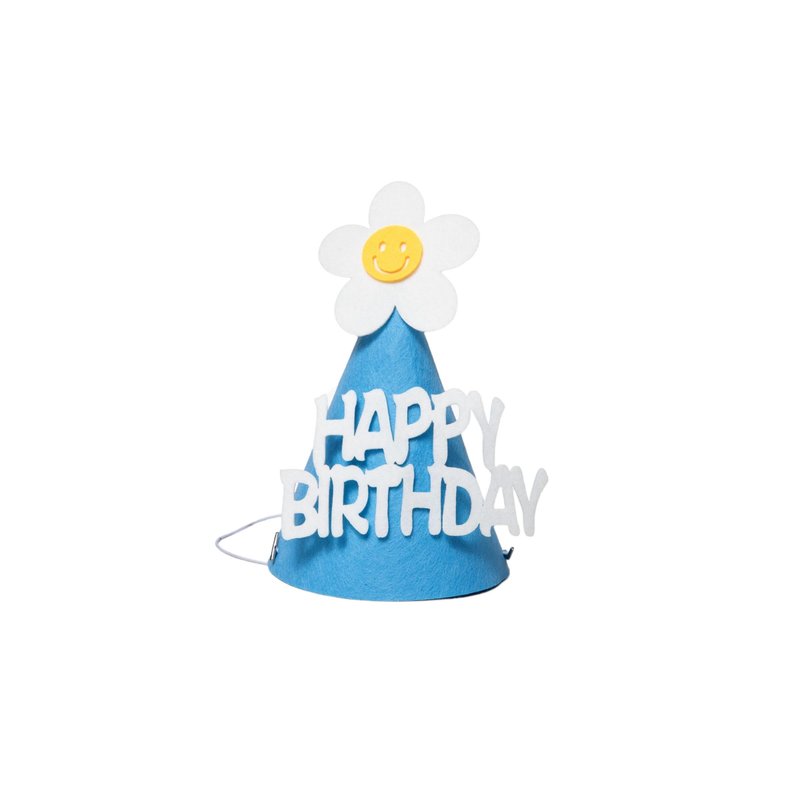 Yinah Cute Flower Birthday Hats With Happy Birthday Letters For Children's Party Decoration Kids Boy Girls Party Supplies Quality Felt Hat 1-5mm Thick (Blue).