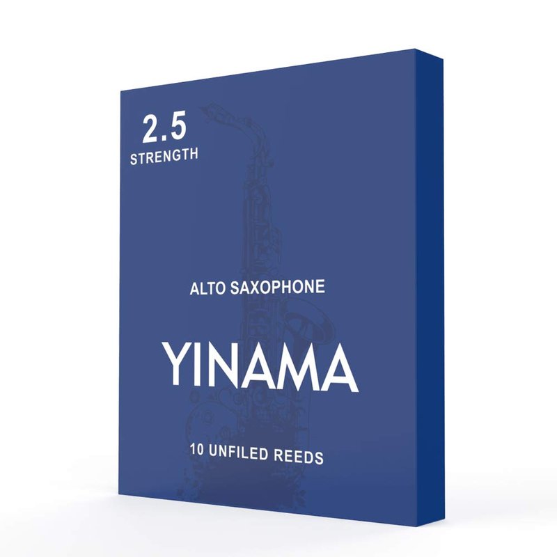 Yinama 2.5 standard alto saxophone reeds. The standard sax reeds offered by Yinama is a great starter piece. The Yinama 2.5 alto sax reeds are extremely flexible, allowing the legato or staccato execution of large intervals while maintaining a richness of tone that gives body and clarity to the sound. Everyone from professionals to beginners likes these reeds.