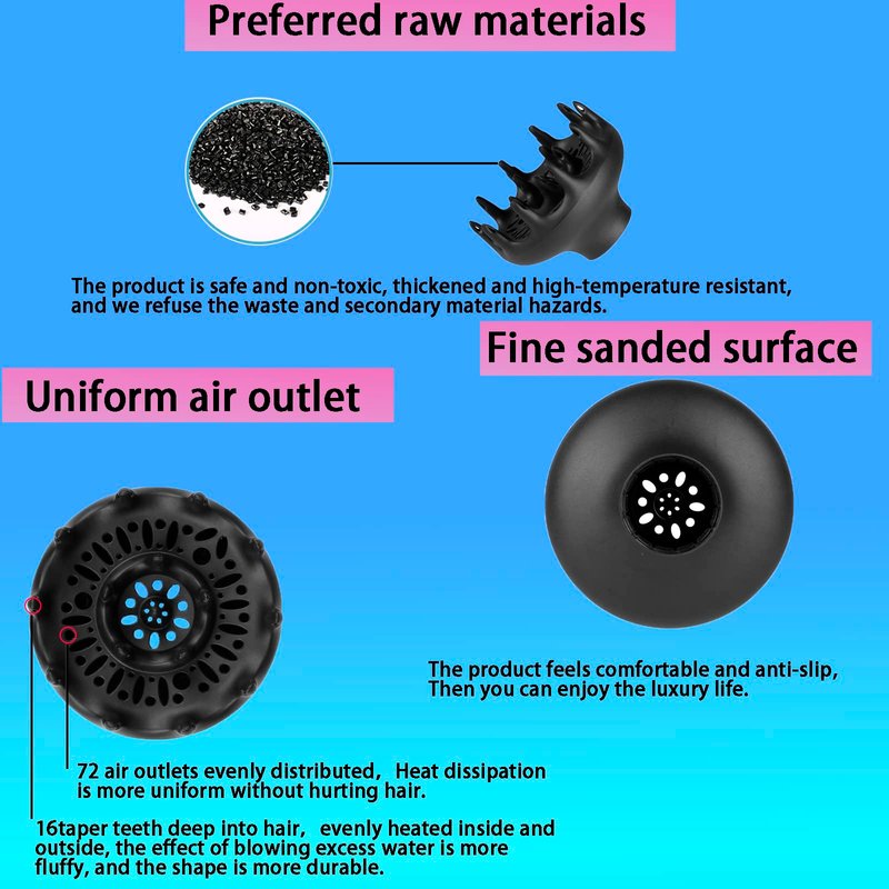- 😊[GET RID OF FRIZZ]:Our diffuser can securely attach to any hair dryer with the same diameter.,360 degree airflow diffuses hair evenly and gently to maximize volume while banishing frizz
