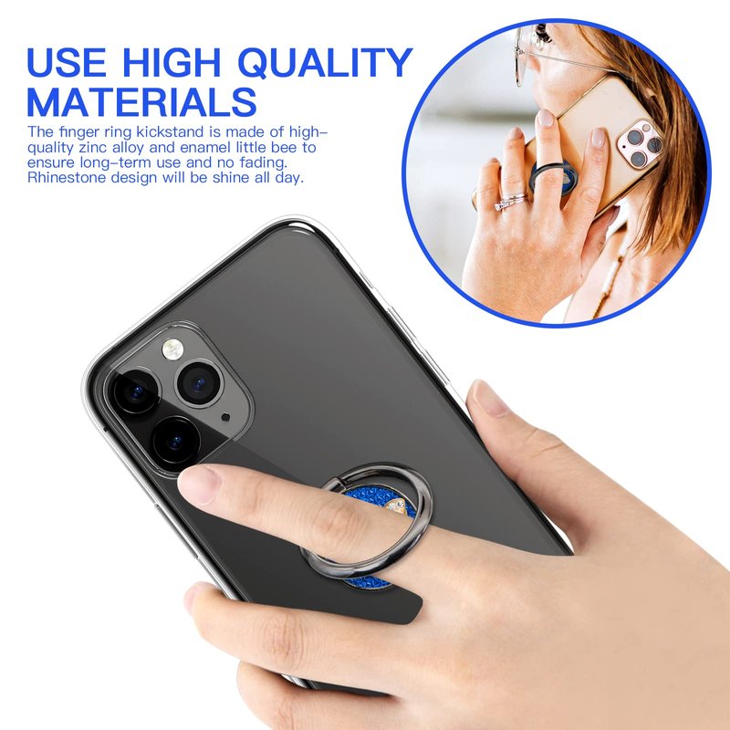 - 【HIGH QUALITY MATERIAL】 The finger ring kickstand is made of high-quality zinc alloy and enamel little bee. Zinc alloy has good ductility and features ruggedness, which contributes to a long lifespan. Polished ring holder, smooth edge, no worries of scratches to your fingers.