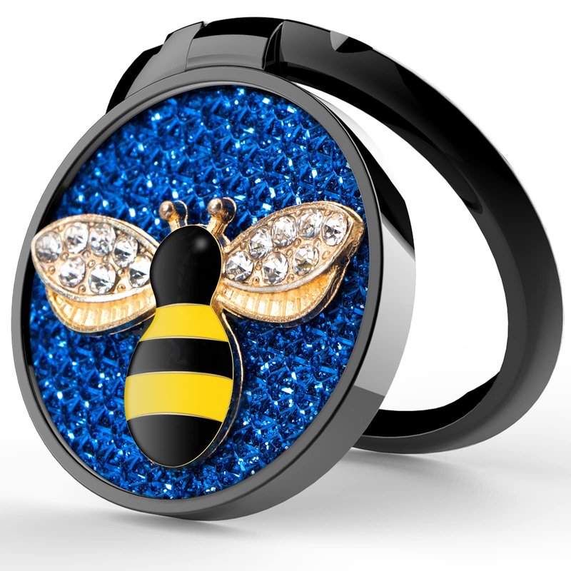 YINHEXI Phone Ring Holder Finger Kickstand, Cell Phone Ring Holder Finger Grip 360 Degree Rotation, with Crystal Stone Enamel Bee (Blue)