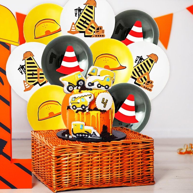 - 🏗 Non-TOXIC & SAFE🏗️: EN71 birthday balloons 14 pack for construction birthday party. made of pure rubber latex,safe material.