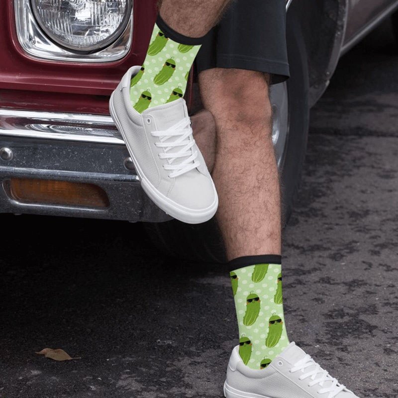 YISHOW Cute Green Pickle Socks Men's Women's Novelty Crew Socks Funny Vegetable Socks