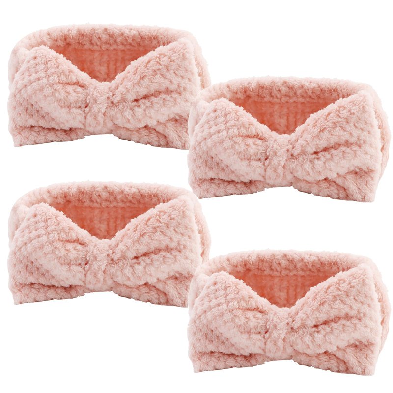 YISSION 4PCS Spa Headband with Bow No Slip Head Band for Face Wash Makeup Skincare Facial Headband Elastic Hair Band Microfiber Headbands for Women Girls (Pink)