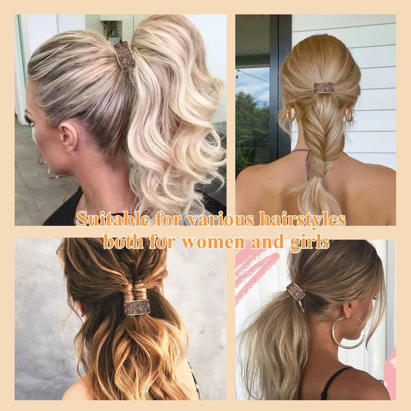 - Premium Material: Made of high quality rhinestones and elastic hair ties, reusable and durable. The hair ties are made to last and maintain their shape and stretch with repeated use.