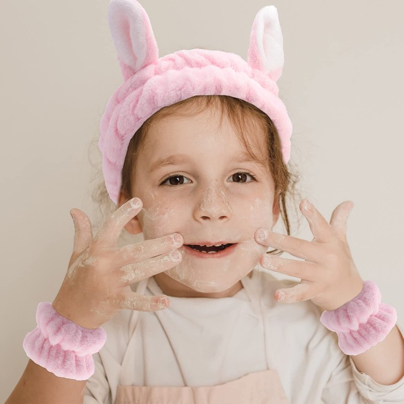 - Package: 2pcs bunny ears headbands and 4pcs wristbands for washing face, spa, skincare, making up and so on. The set is strong practicality and good-looking, making your life more sophisticated.