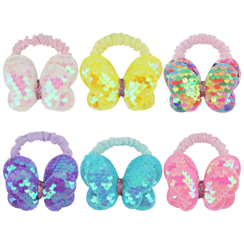 YISSION 6PCS Sparkly Butterfly Hair Ties for Girls Cute Colorful Elastics Hair Ties Soft Rubber Bands Toddler Kids Baby Hair Accessories for Girls
