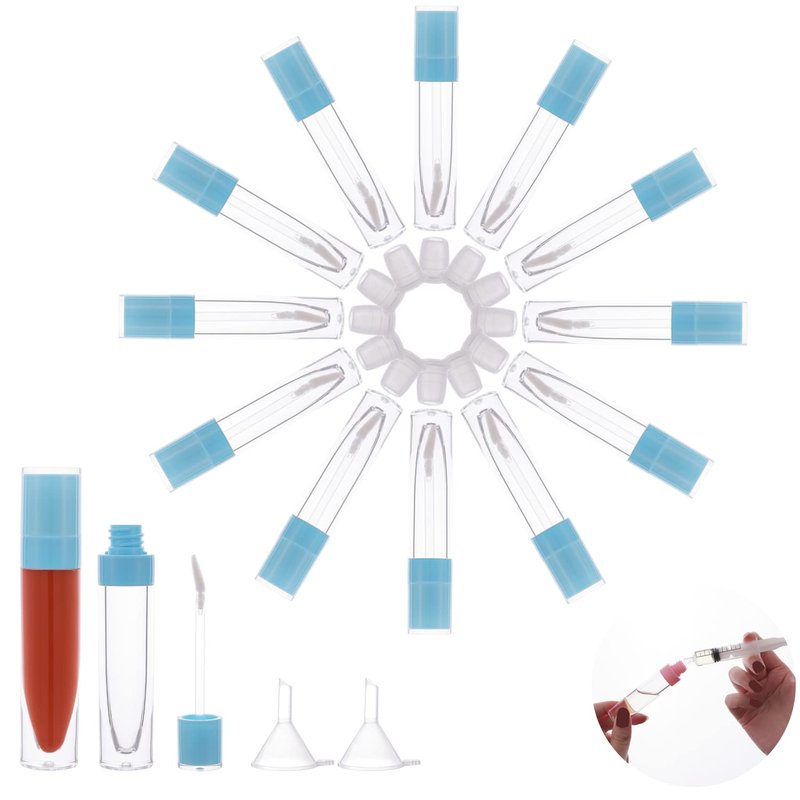 - [Lip Gloss Making Kit Cute] - The mini lipgloss tubes with wand are made of high-grade AS material, comes with 12 pieces rubber stopper and 2 pieces Funnel, for women girl when travel, Christmas. The length of the containers is about 95.1mm/3.7'', the bottom diameter is about 19.7mm/0.78'', color: blue.