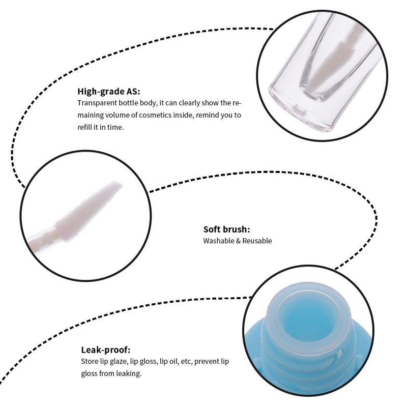 - [Sample Size Tubes] - 8ml refillable lip gloss tube, washable and reusable.Suitable for DIY lip gloss, lip balm, lip gloss base, liquid foundation, lip oil, lipstick, etc. You can enjoy the fun of handmade and make your own lip gloss business to your clients.